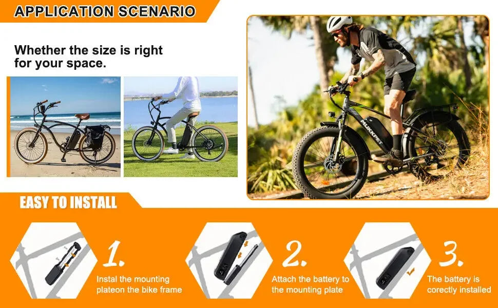 Please confirm the motor and voltage of your ebike before the purchase and check whether the size of the battery can be placed in your bike's frame,and finally choose the battery that fits for your bike.