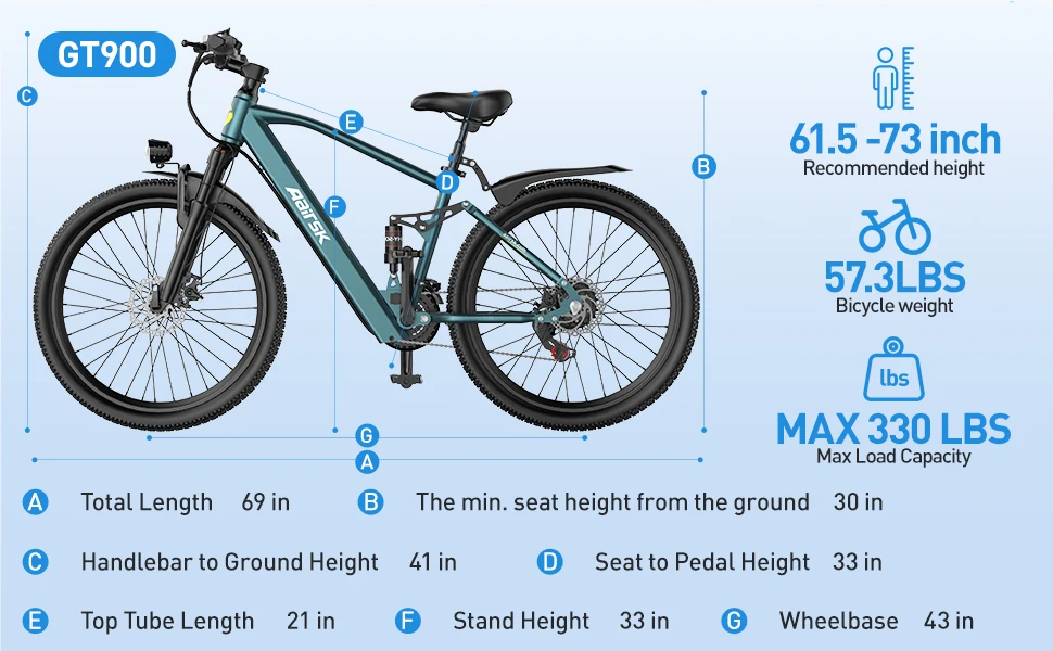 Aairsk GT900 Adult E-bike 400W Motor 36V 13Ah Battery Electric Bike 26 Inch Fat Tire E-Mountain bike Off-road Electric bicycle