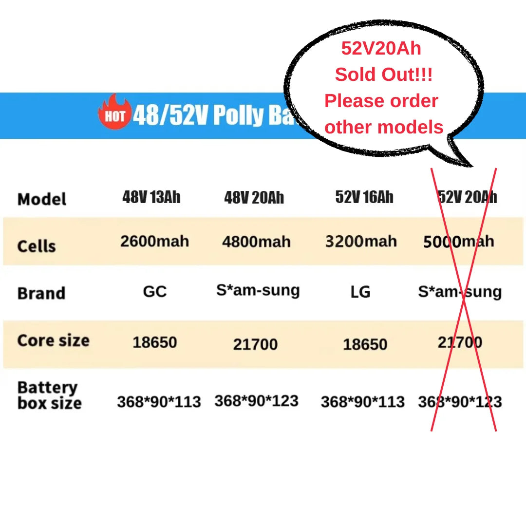 Please do not order the 52V 20Ah kit as we are unable to arrange shipment for it.