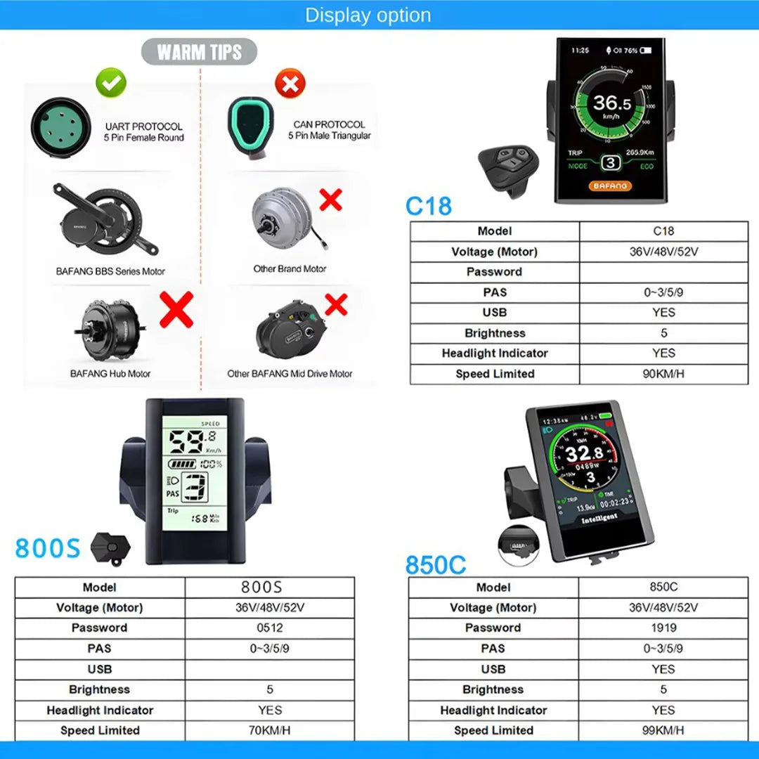 If you want a more intuitive understanding of battery power and you want your bike more cool, it is recommended that you select DP-C18 display.