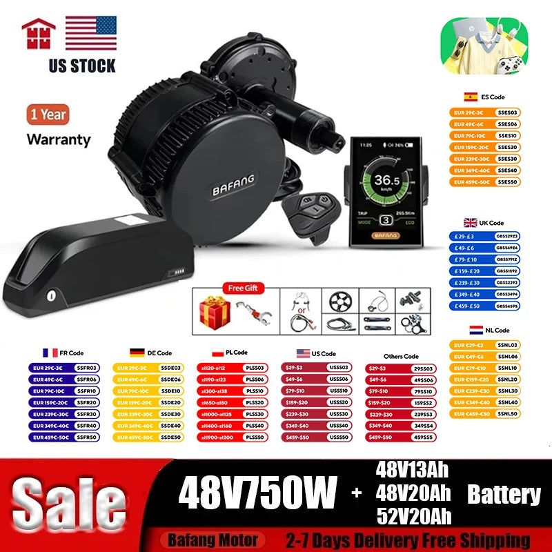1.Warranty,BAFANG Offcial Authorized Seller:1 Year warranty for Electric Bike Battery and Bafang Mid Drive Motor Kit,free repair or replacement if there is any quality problem.