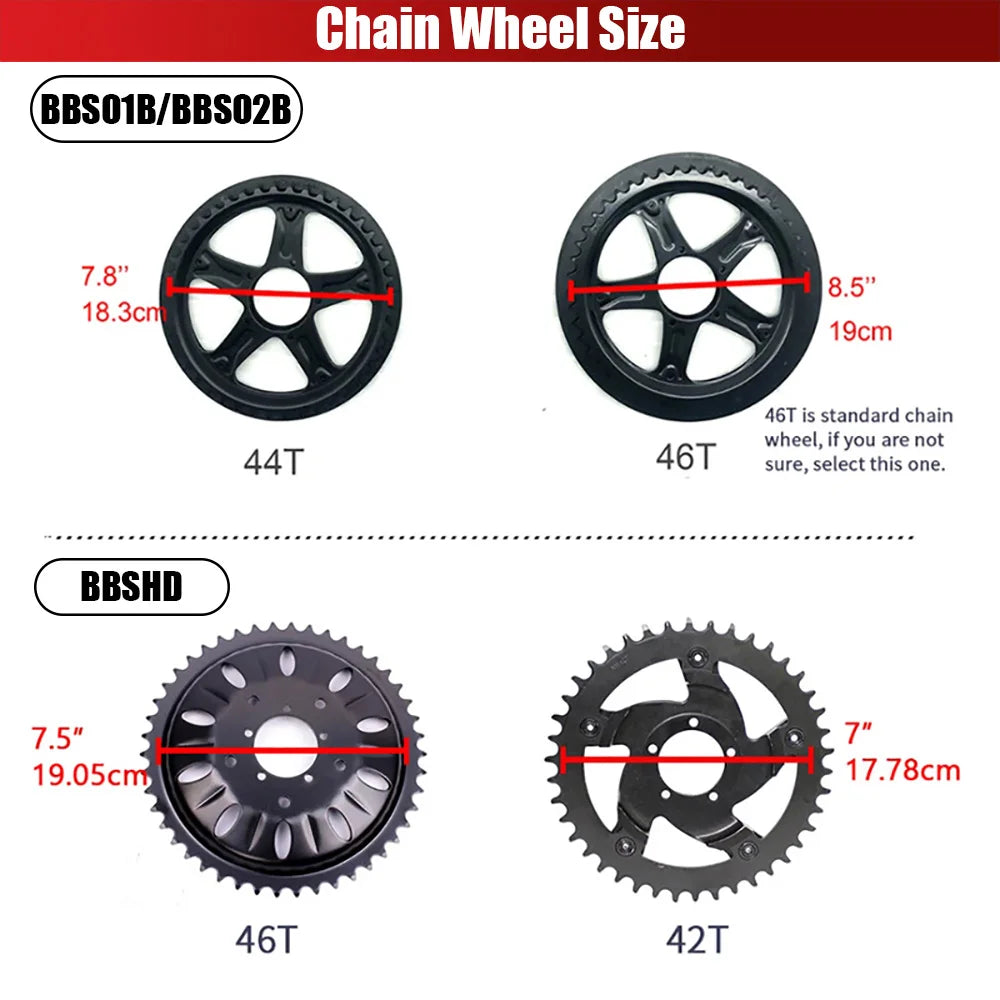 ❊❊❊❊❊For a normal pedal bike without electricity, small chainring is more compatible with mountain bike which can help you climb easier. Big chaining is more suitable for city bike, road bike and foldable bike which can help you enjoy faster speed.