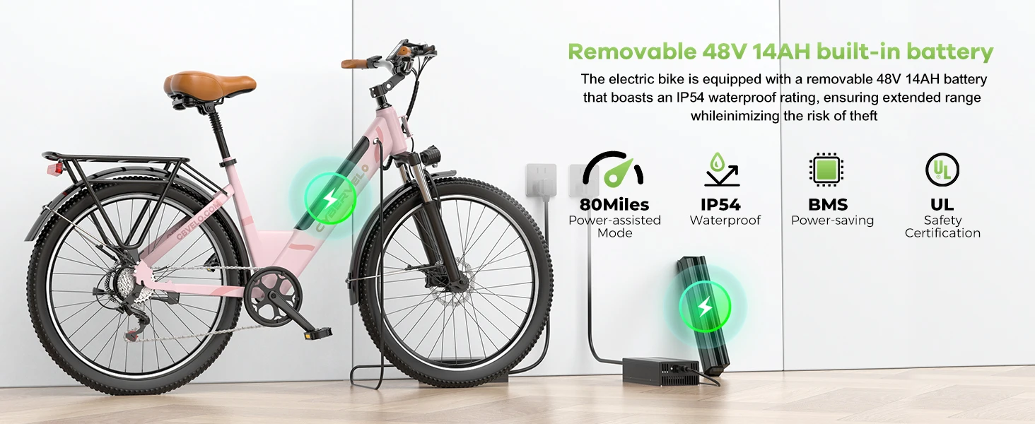 Cybervelo EK2 48V 1000W Peak Motor, Removable Battery 7-Speed Shift Urban Commute EBike, 26" City Ride Long Range Electric Bike