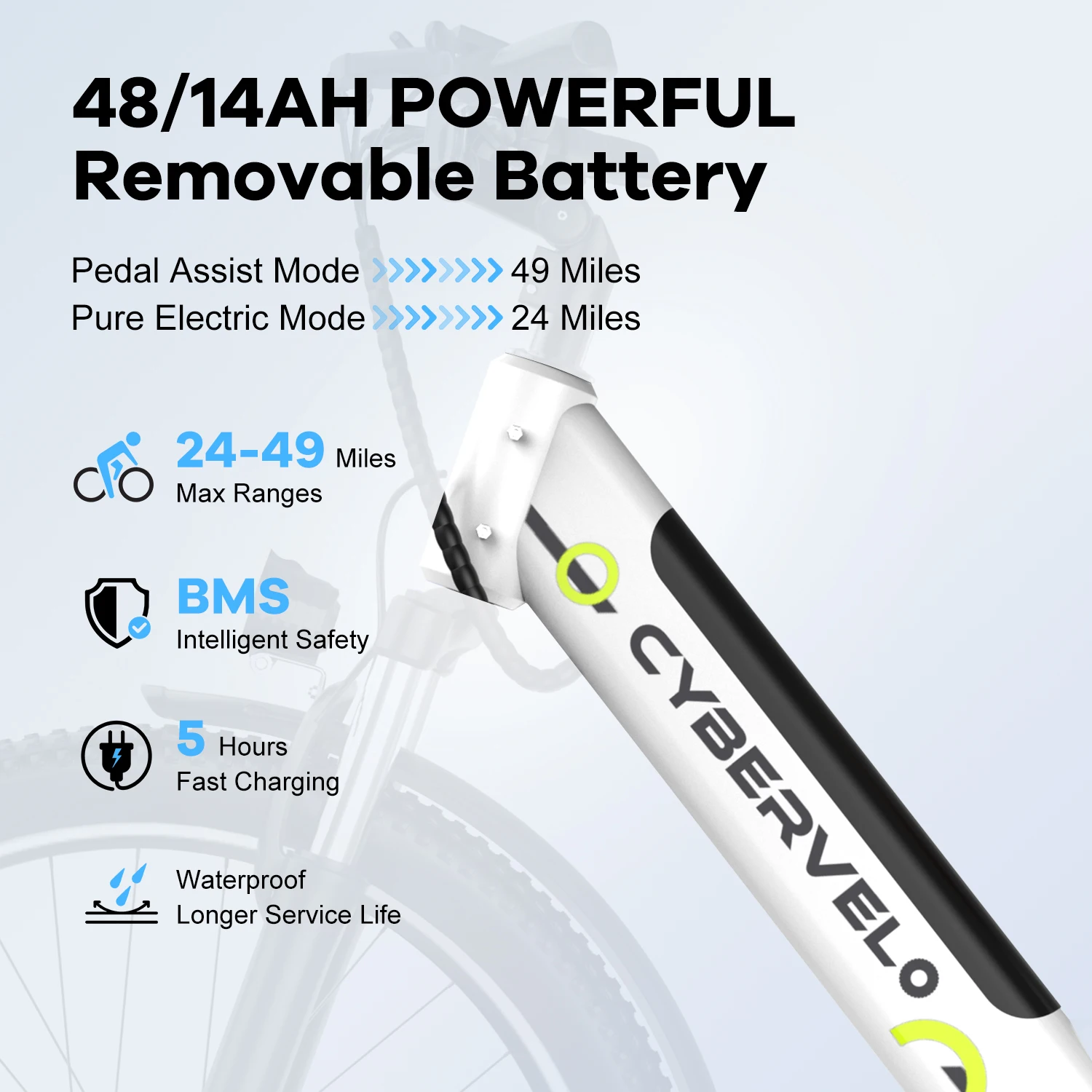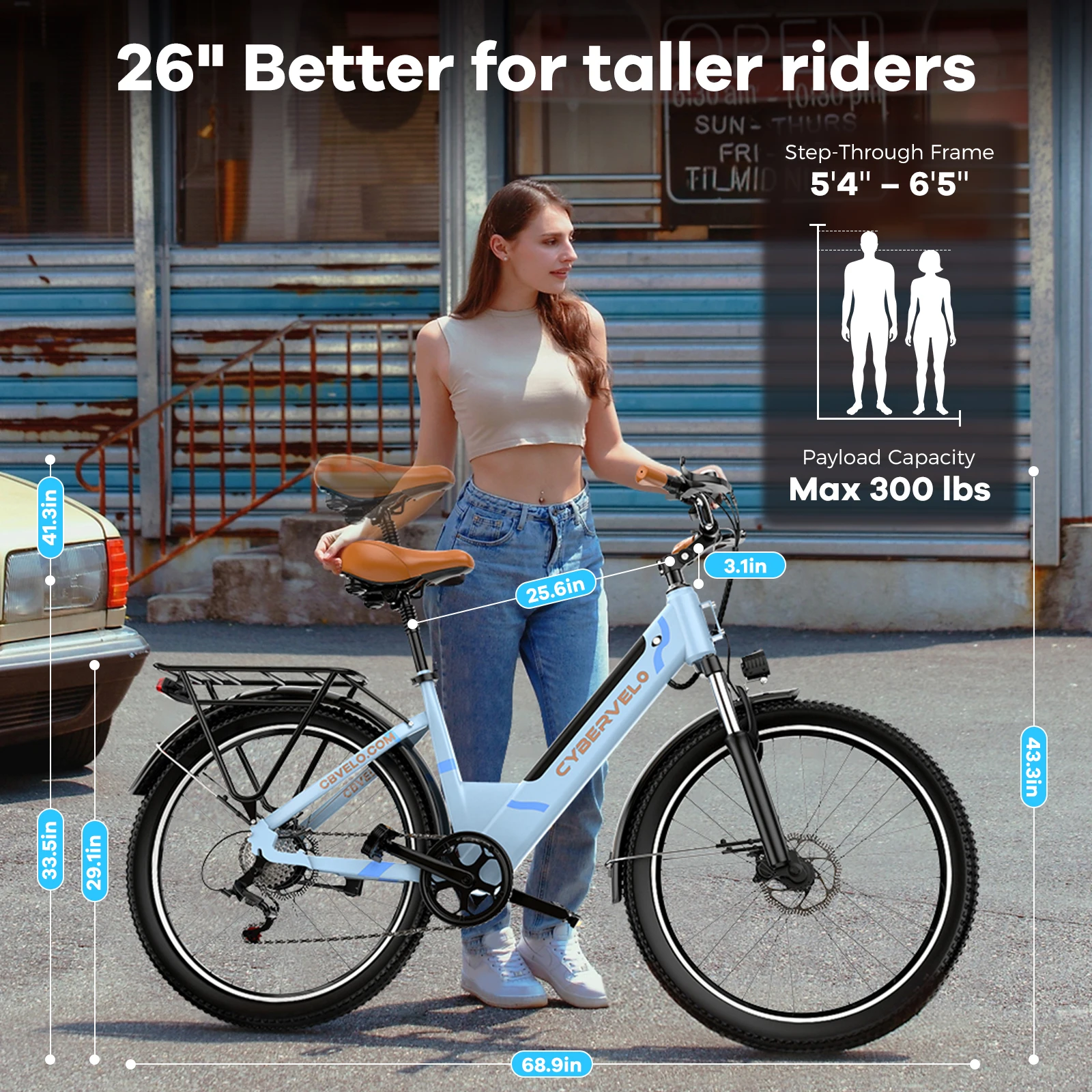 Cybervelo EK2 Peak 1000W 26 inch Electric Bicycle, Lithium Removable Battery Ebike with 7-Speed for Adults Womens All Terrain