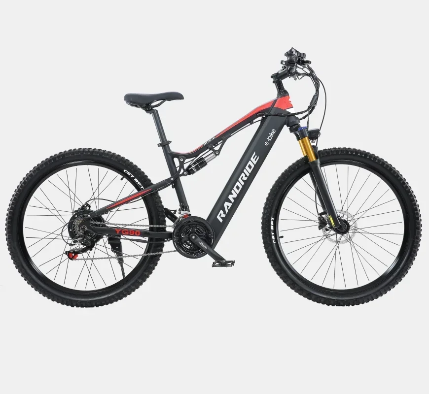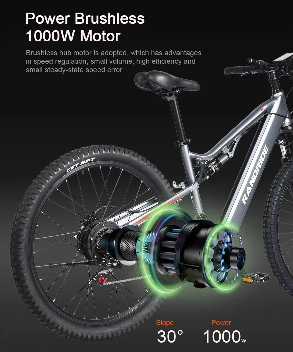 Electric Bicycle RANDRIDE YG90 1000W 48V17AH Hydraulic Brake E-bike with Full Suspension 21 Gears Shift Free Rack Electric bike
