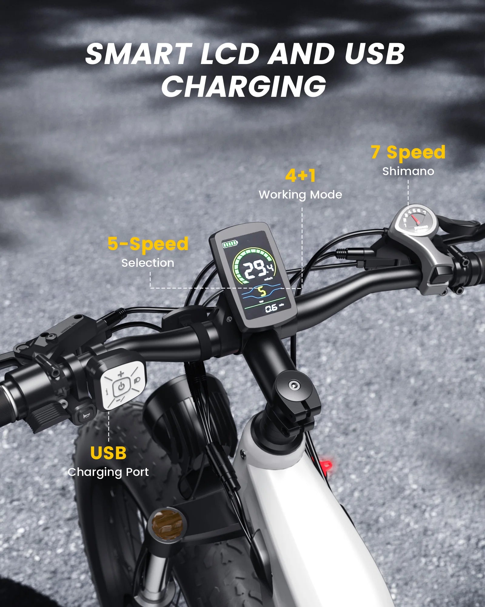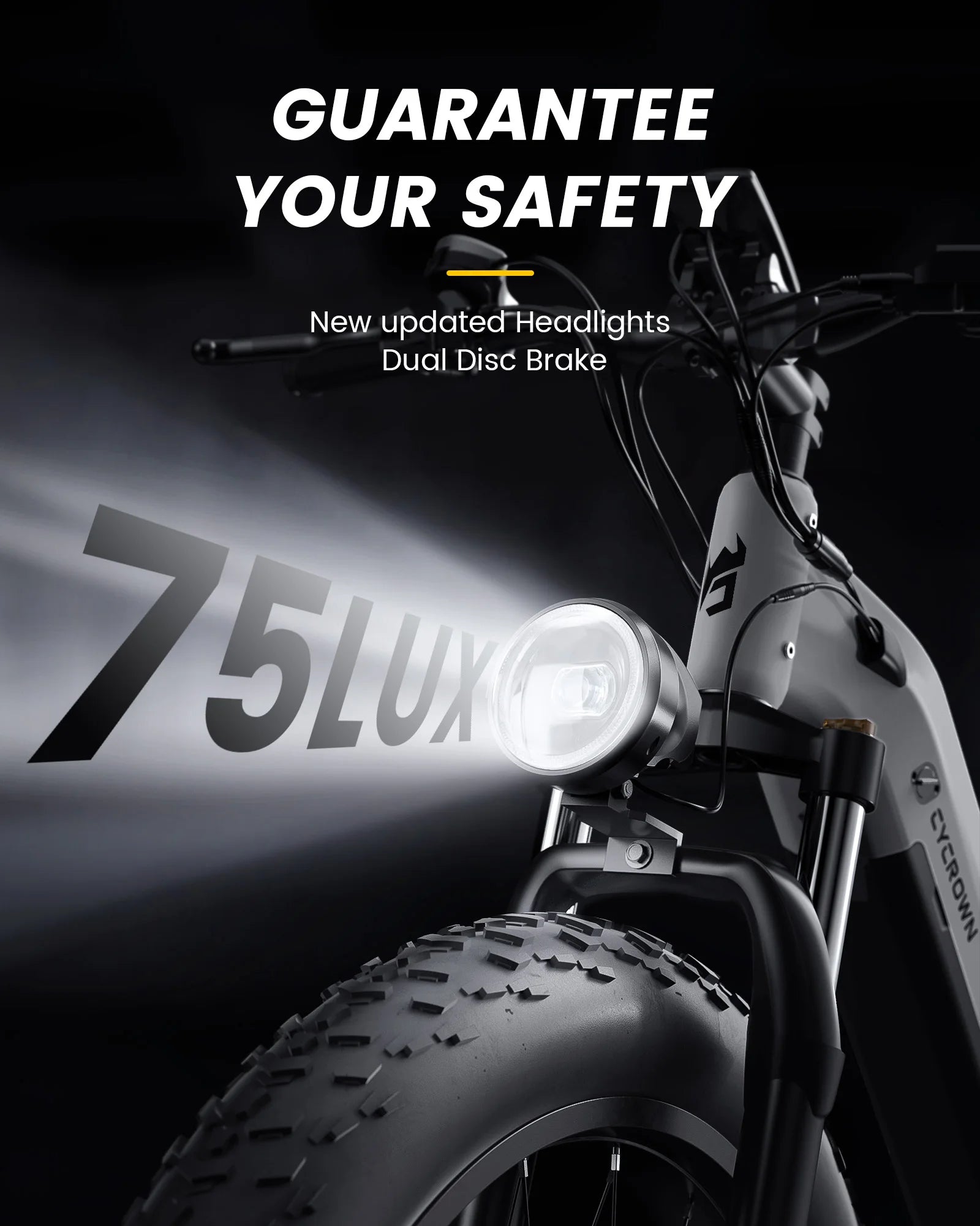 🔧 Powerful Power Output: Equipped with a high-power 1000W motor, the CYCROWN VERVE boasts performance far exceeding that of conventional e-bikes, offering quick startup and powerful acceleration. It can handle common urban overpasses and gentle climbs in the suburbs without pedaling. Even when fully loaded or carrying a companion (in compliance with safety regulations), it maintains ample power, making it easy to handle daily commutes and weekend shopping trips.