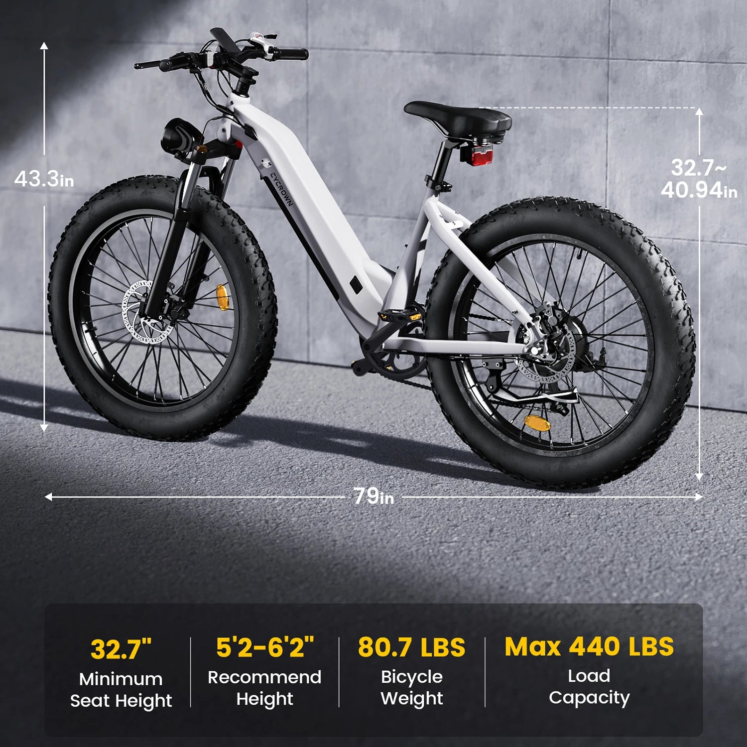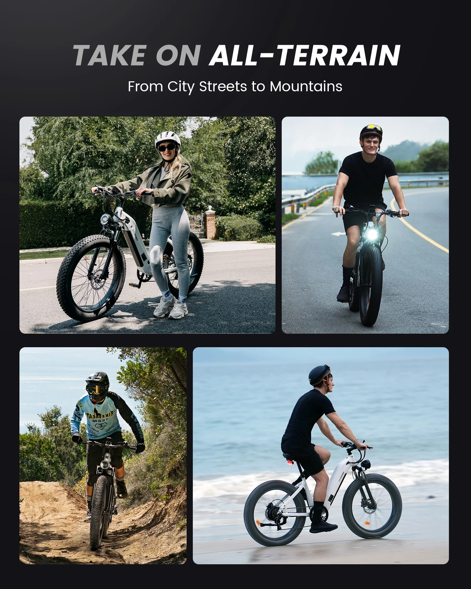 Electric Bike For Adults CYCROWN CYCVEVRE 26x4" 1000W Motor Top Speed 28Mph 48V 15.6AH Range 60Miles Max Load 330Ibs New