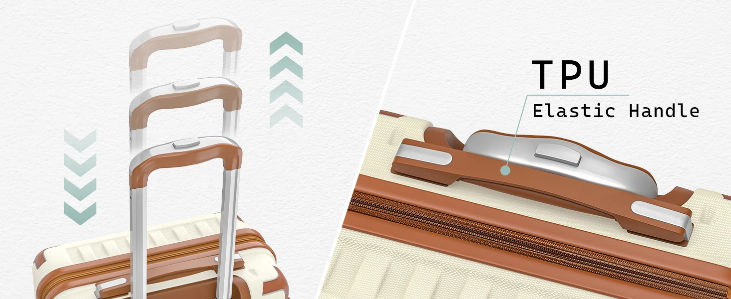 YKK Zipper & Telescoping Handle: We can easily open and close the luggage sets without worrying about the zipper getting stuck or damaged. The 3-section telescopic handle allows you to easily hold the suitcase set without getting tired even on long walks.