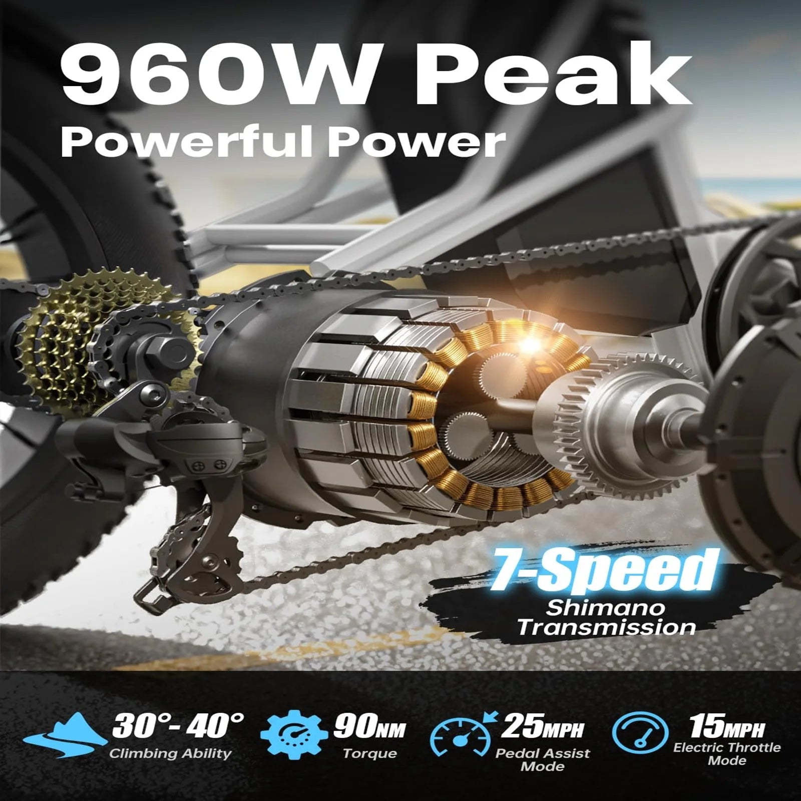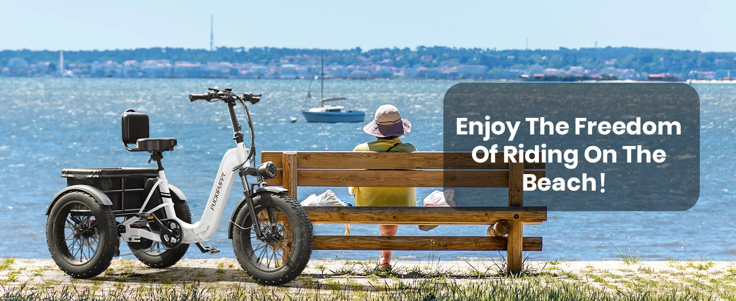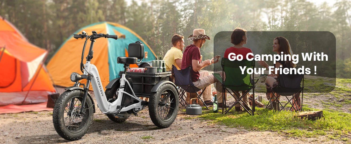UP TO 960W PEAK: PUCKIPUPPY's electric tricycle is equipped with a powerful high-speed brushless rear hub motor (up to 960W peak)! Strong power, ready for all kinds of road conditions, brings you more riding confidence. Get ready to experience the ultimate ride! With a top speed of 25MPH in pedal assist mode and 15MPH in electric throttle mode.