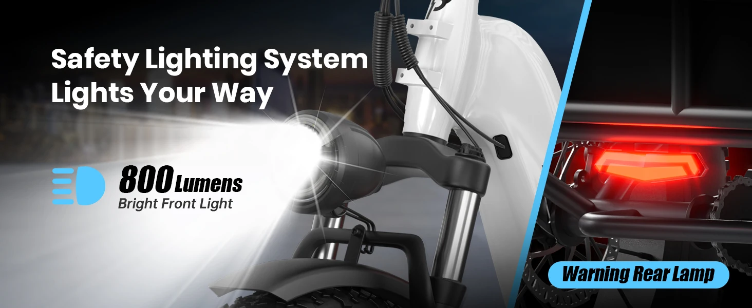 High Configuration: Integrated LED instrument panel, speed, driving gear, headlight and taillight on/off are all integrated in the instrument panel, with the latest dashboard interface designed for riders, you can easily view every piece of information. Equipped with high lumen front and rear lights and a taillight with brake light to warn the rear. In addition, the trike comes with a spacious rear storage basket (19.68*17.5*10.2 inches)