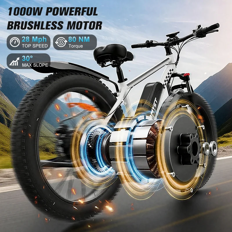 QNQ Electric Bicycle 1500W Motor 48V Lithium Battery Electric Bike Hydraulic Brake 26*4 Inch Fat Tire Snow E-bike