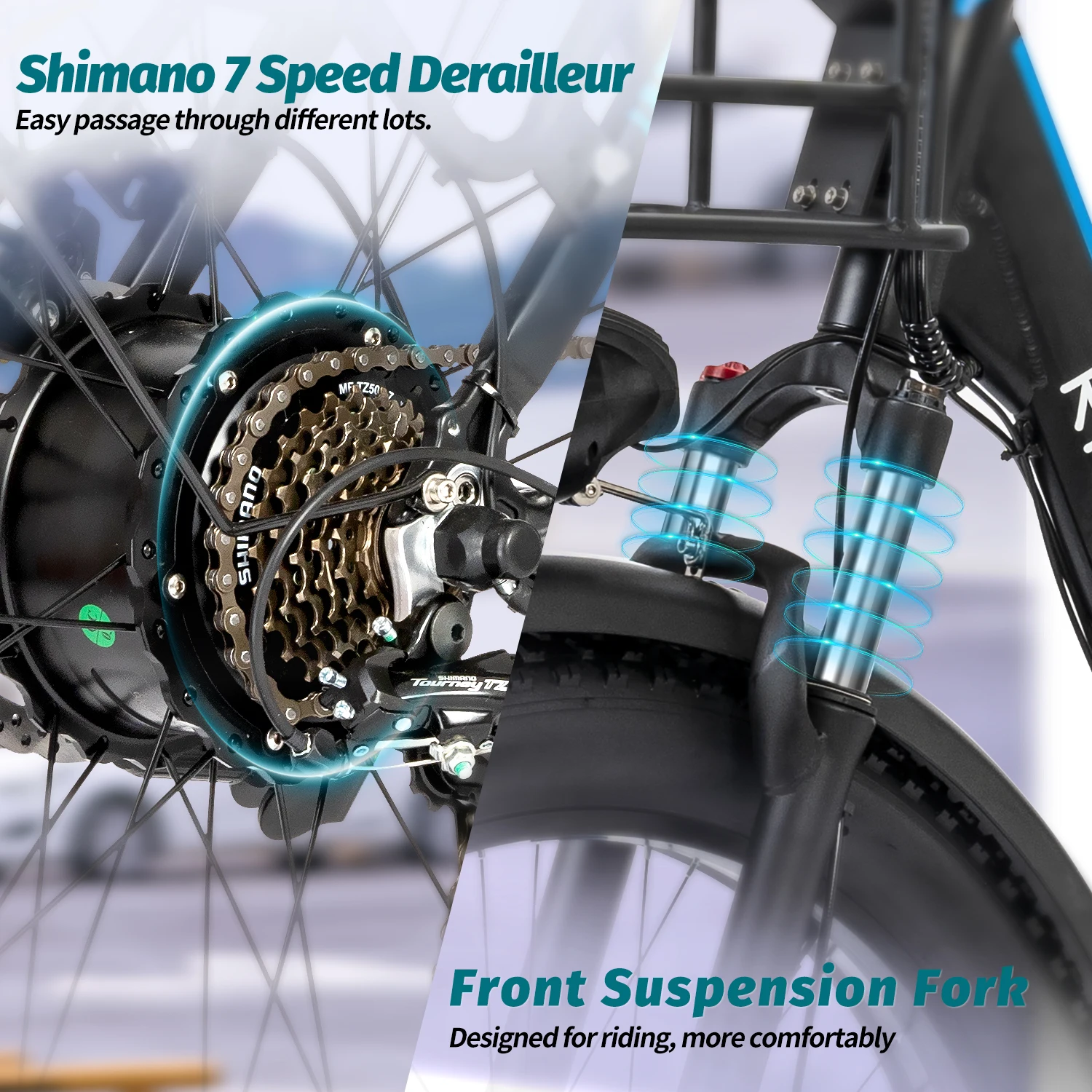 Features3: Electric Bicycle with Dual Shock Absorber