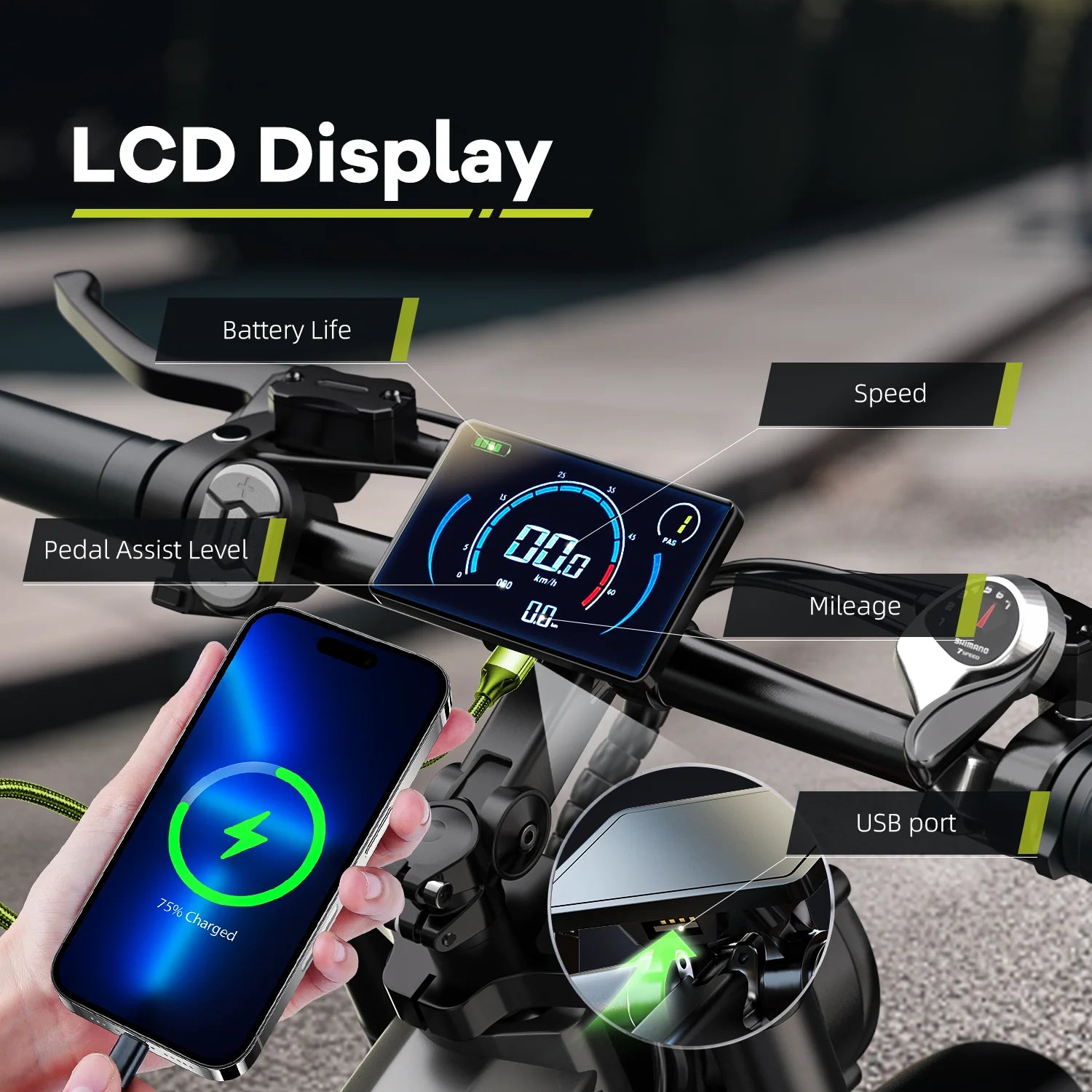 【Intelligent LCD Display】-- The large LCD display on this EK9 provides real-time information, including battery status, current speed, total distance, power output and riding time. Instantly detects and reports any errors and seamlessly controls your bicycle's lighting system for safer and more convenient riding.